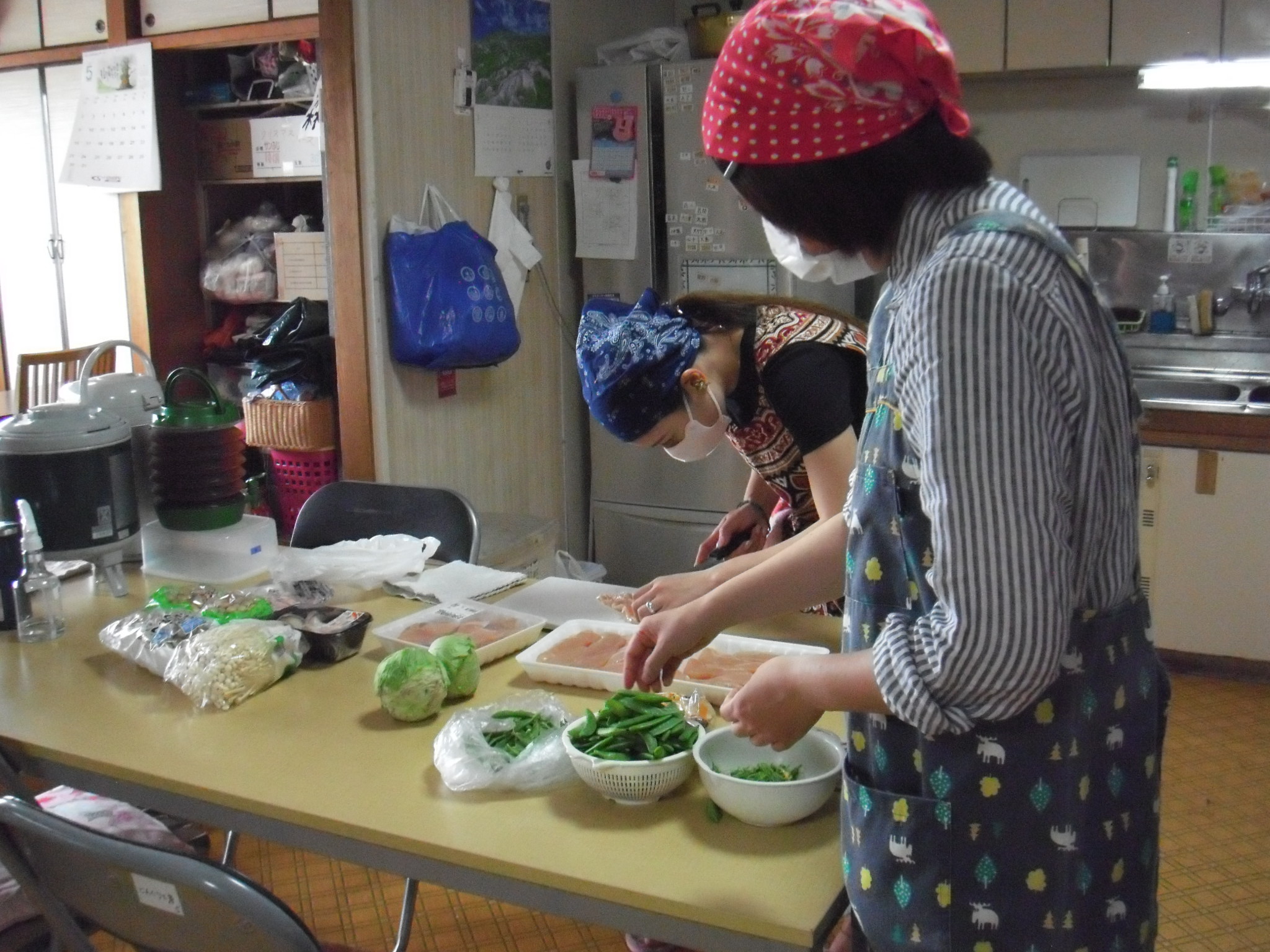 農園で収穫した野菜などを利用して、メンバーさんと一緒に毎日昼食を作っています。 メニューは、どんぐり工房ホワイトボードに1か月ごとの献立表を掲示しています。ご確認ください。